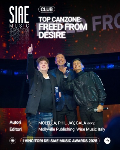 FREED FROM DESIRE wins, once again, the prestigious SIAE MUSIC AWARDS 2025 in the CLUB category